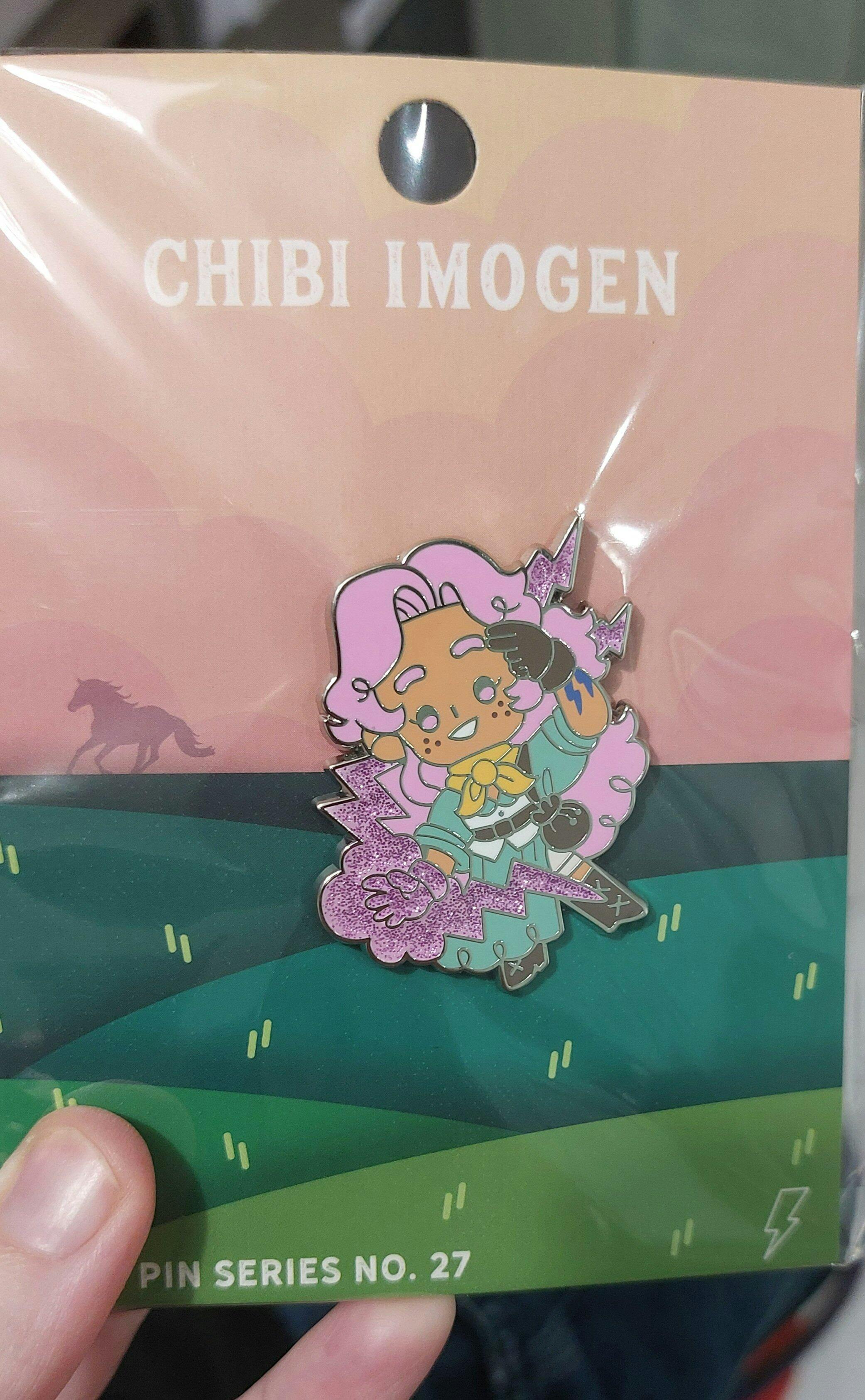 As you stride forth into the great unknown, take heart from the freckle-faced earnestness of this Imogen Temult pin. She’s ready to ride horses or wield lightning as the need arises!