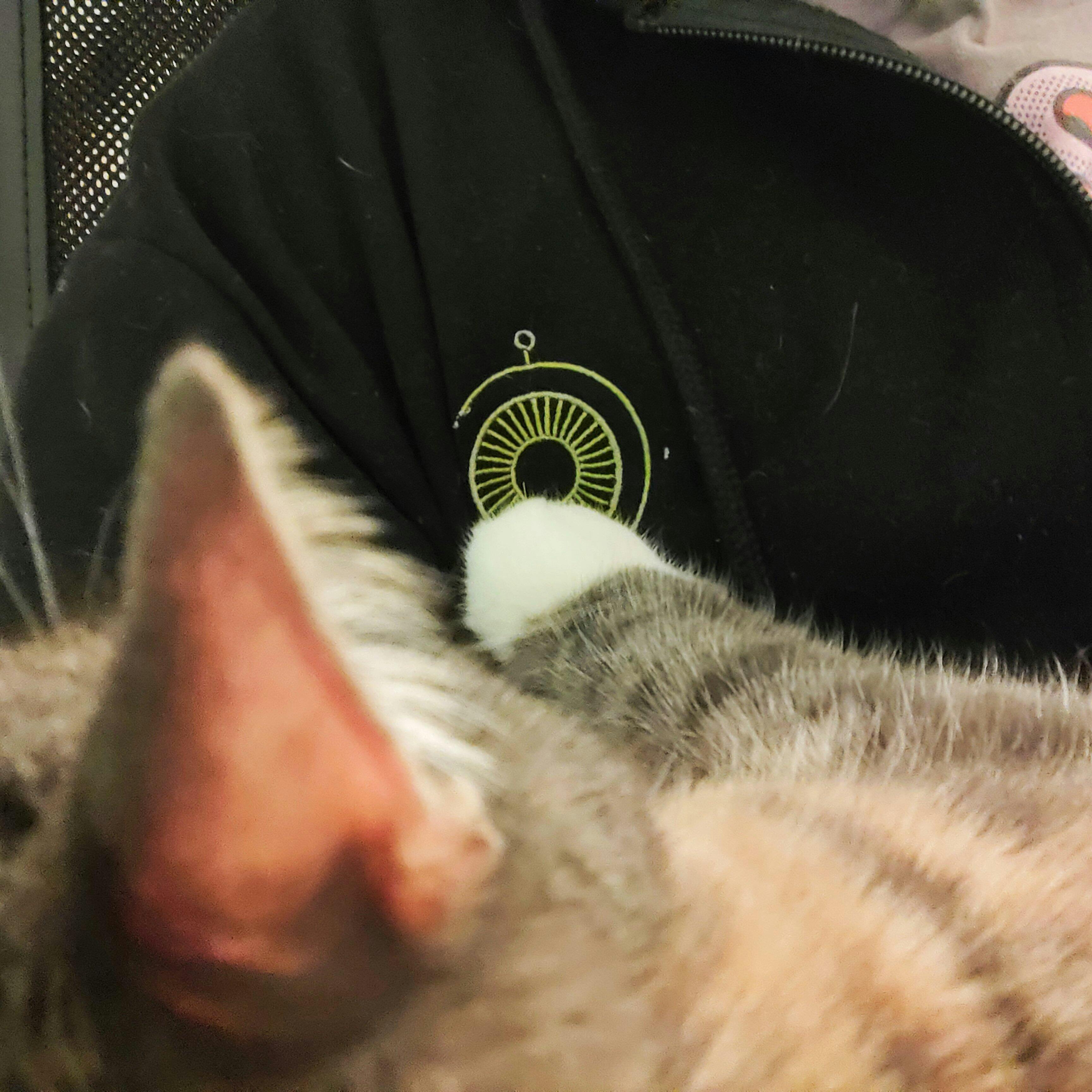 Members only! Secretly sort yourself as an investigator of occult magick by sporting this comfortable Candela Obscura black zip closure hoodie featuring a full hood with drawstrings, as well as ribbed cuffs and waistband. The official logo is embroidered on the front left chest area, and the back displays a large screen printed illustration of a worm’s eye view of a Candela Obscura circle peering into a grave. A scrawling hand across the illustration reminds us "Death is not the only way to go.”