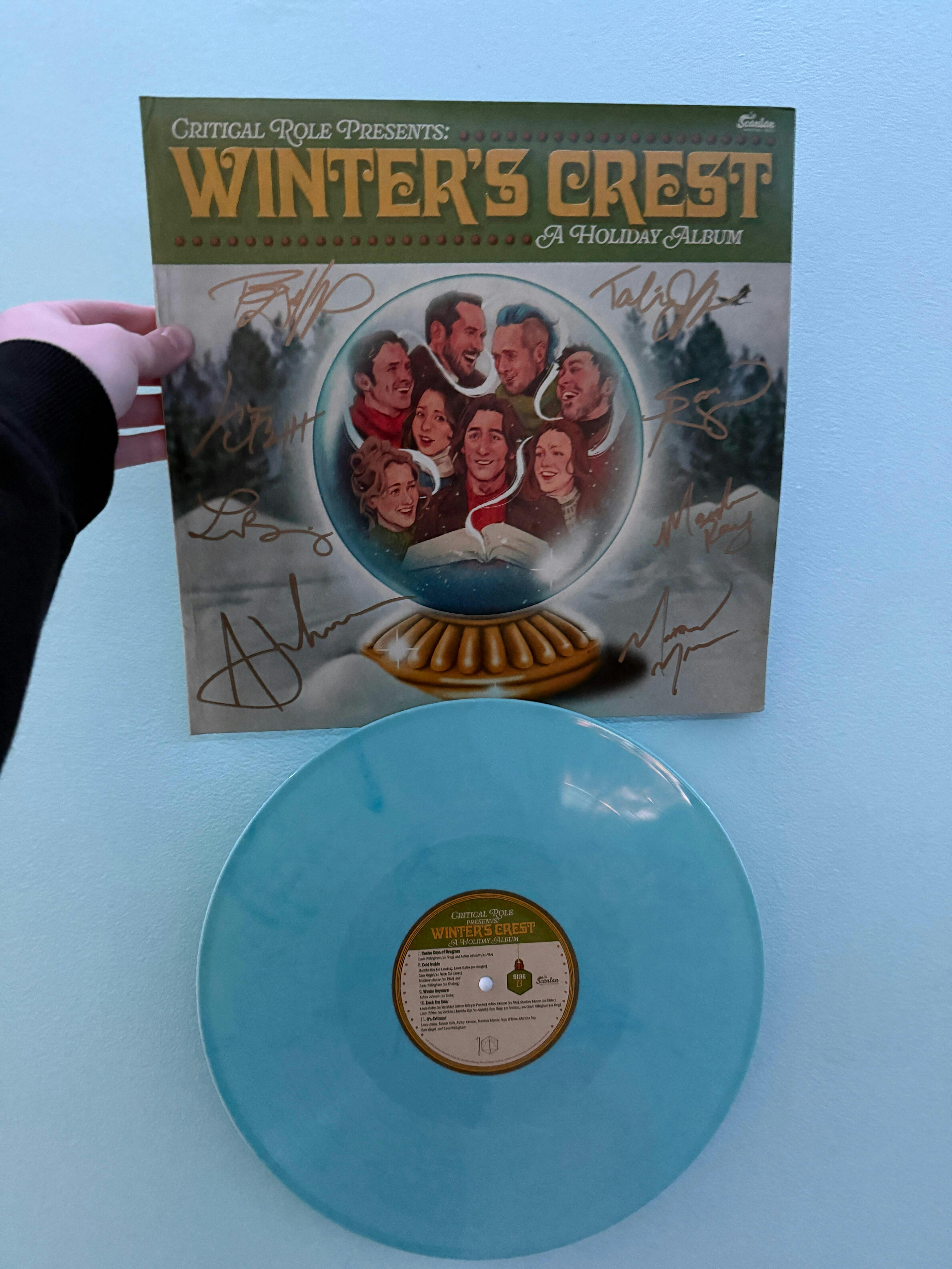Truly a treasured keepsake, we’re delighted to unveil this spectacular vinyl album, Critical Role Presents: Winter's Crest (A Holiday Album) in a stunning Deluxe Edition, signed by each Critical Role cast member and containing exclusive extras including a variant cover, a vinyl sticker pack of cast member portraits framed in ornaments, a 5x7 postcard, and pack of festive polaroid-style photos.