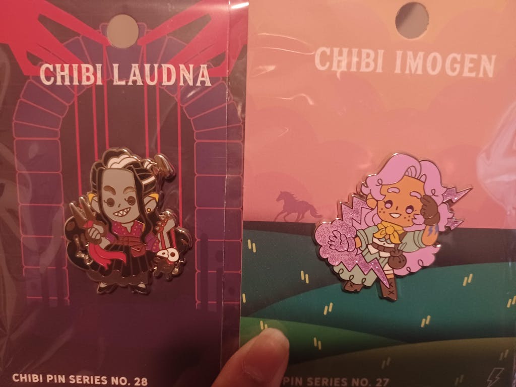 As you stride forth into the great unknown, take heart from the freckle-faced earnestness of this Imogen Temult pin. She’s ready to ride horses or wield lightning as the need arises!
