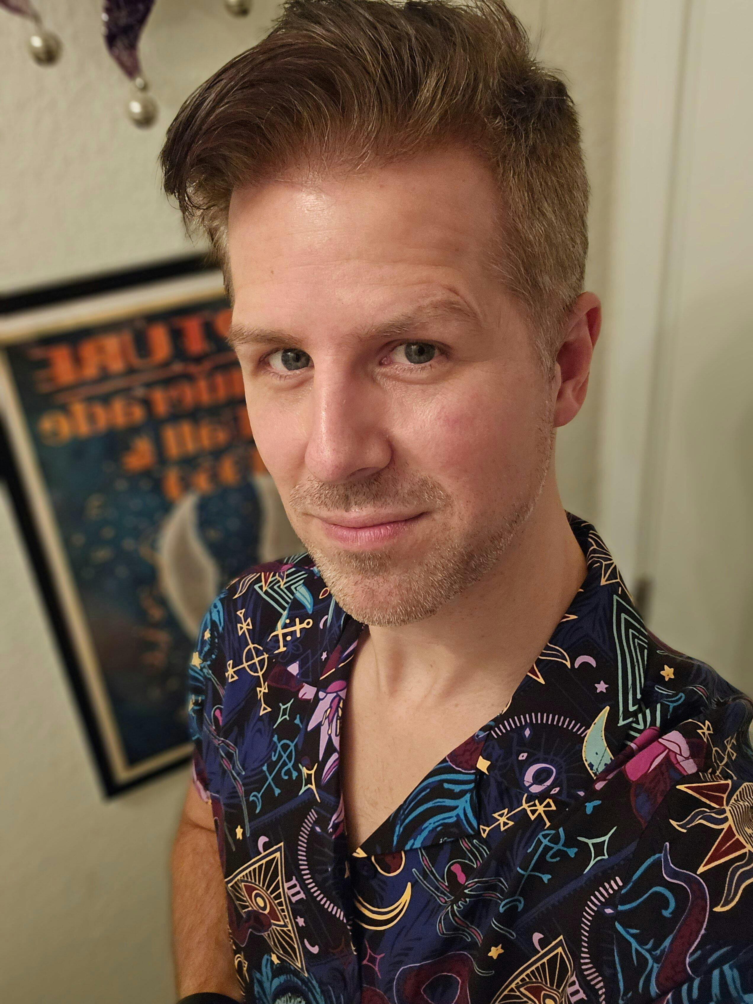 Long may the fashions of your wardrobe reign with the addition of the Beauty of Exandria™: Mollymauk Tealeaf Camp Shirt, made in homage to the extravagant bloodhunter himself. Inspired by his signature coat, the lightweight, unisex, button down shirt is patterned with a vibrantly colorful design representative of Mollymauk Tealeaf’s flamboyant and enigmatic nature.