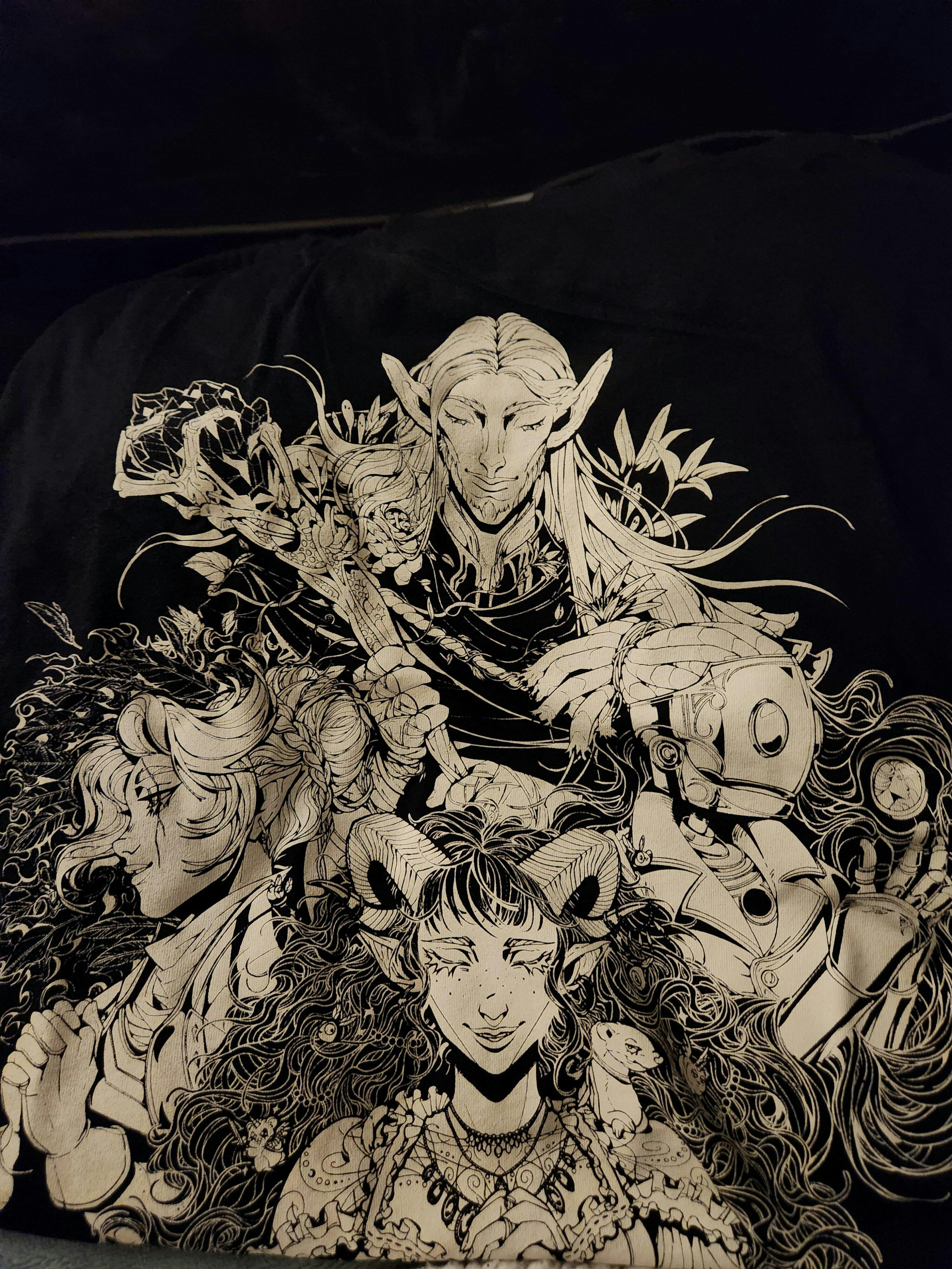 No adventure across Exandria™ is without battle scars. But no need to worry—these wonderful characters are here to mend your wounds. Add this cool and comfy t-shirt to your collection featuring a large portrait screen print of all four healers across Critical Role’s 3 campaigns: Pike Trickfoot from Vox Machina, Jester Lavorre and Caduceus Clay from Mighty Nein, and Fresh Cut Grass from Bells Hells.