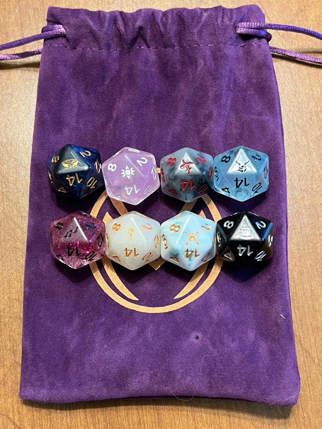 - Set of eight standard 20-sided resin dice